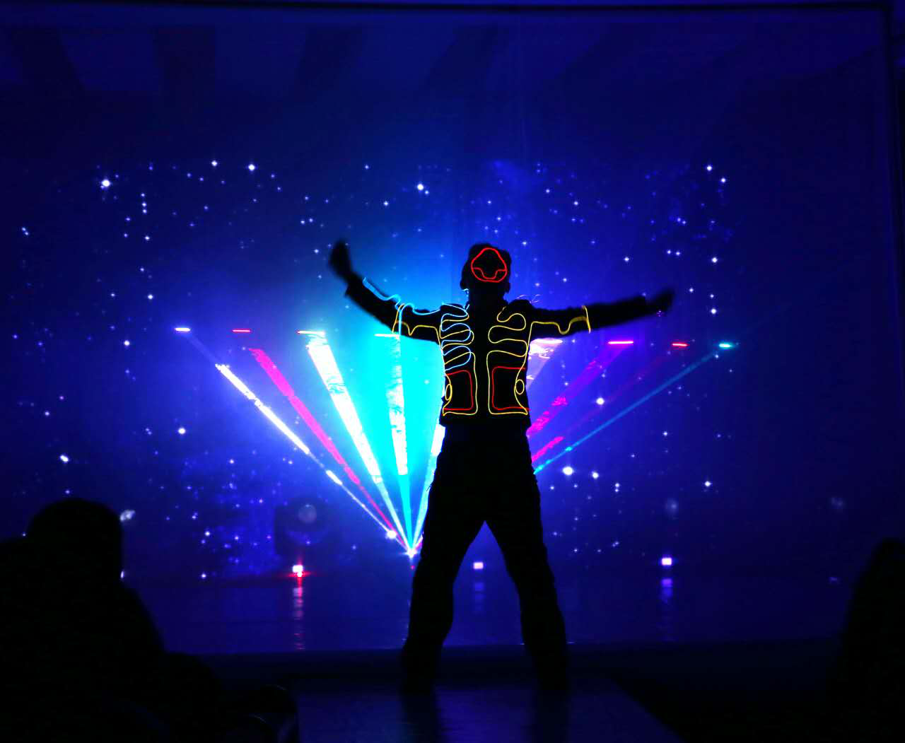 整場晚會由節(jié)目表演和歡樂抽獎交替進行。節(jié)目表演部分形式多樣、精彩紛呈,不僅有專業(yè)的高水平表演團隊加盟,更有員工及家屬傾情演繹:開場節(jié)目《4D激光舞》剛勁有力、時尚魅影、潮流炫動,在黑暗中跳出激情;人體懸浮魔術精彩刺激、扣人心弦;舞蹈“水墨江南”唯美大氣,引人入勝;花式調酒火光十色熱情奔放;銷售公司李雄演唱的《夢中的綠洲》高亢嘹亮,猶如天籟;銷售公司執(zhí)行總監(jiān)張玲的女兒劉玥含小朋友帶來的“寶貝模特秀”,古靈精怪,靈氣逼人;廣州代表處袁鵬宇演繹的街舞青春洋溢、動感十足,歌聲、掌聲、歡呼聲持續(xù)在會場蕩漾。